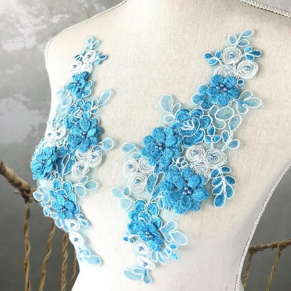 モチーフ ブルー系 花 衣装作り レオタード 社交ダンス バトントワリングモチーフ レースモチーフ チュールモチーフ バレエ衣装 コスプレ 舞台衣装