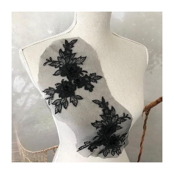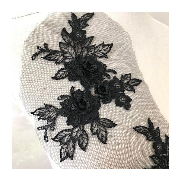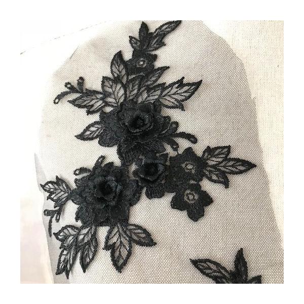 チュールモチーフ 黒 花 刺繍 ハンドメイド 衣装 装飾