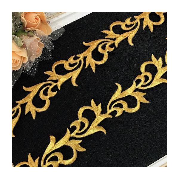 ゴールド ブレード リーフ模様 衣装用 アップリケ 刺繍ワッペン レオタードモチーフ アイロンワッペン アイロン接着 アップリケワッペン パーツ