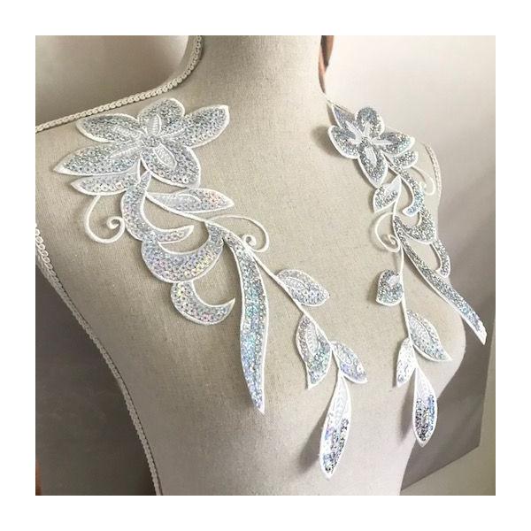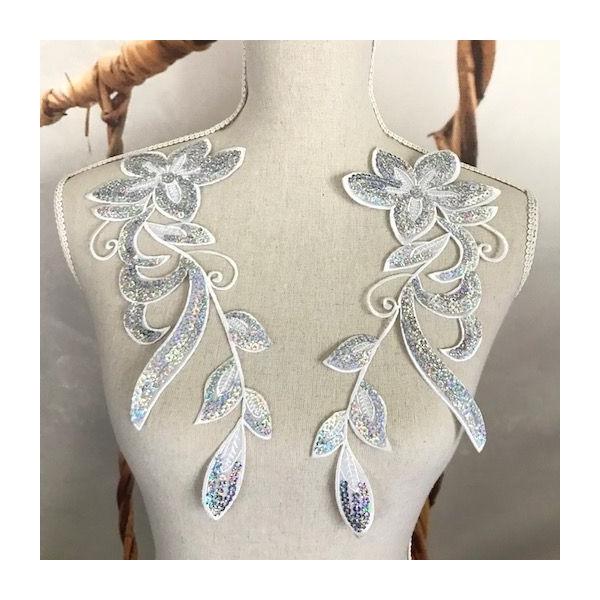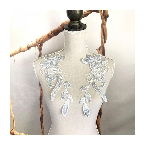 スパンコールモチーフ 花 シルバー アップリケ 刺繍ワッペン モチーフ アイロンワッペン アイロン接着 アップリケワッペン パーツ 素材 モチーフ 装飾