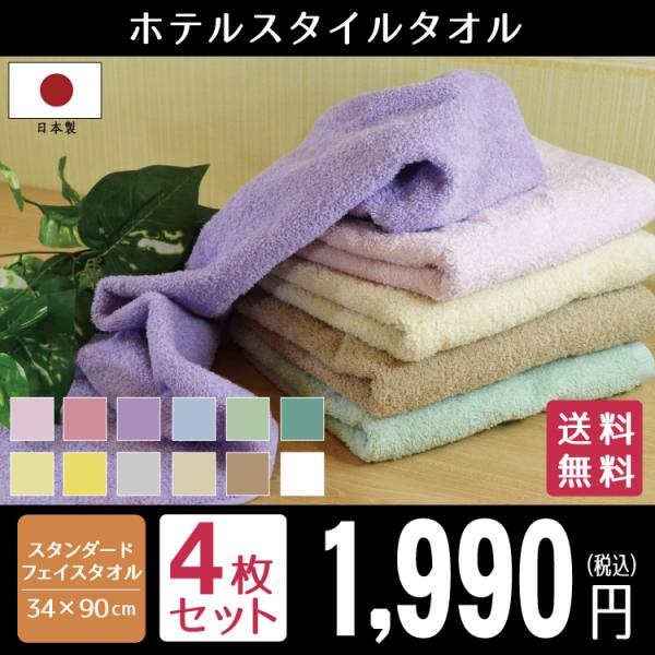 フェイスタオル まとめ買い タオル 同色4枚 ホテルスタイル 日本製 セット スタンダードフェイス 約34×90cm 泉州タオル 国産 吸水性 ボリューム ポイント利用