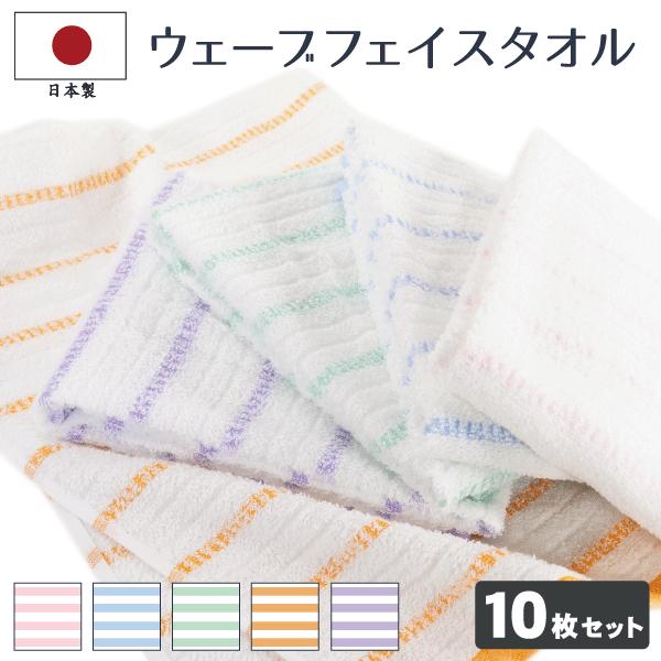 フェイスタオル まとめ買い タオル 10枚セット ウェーブタオル 日本製 セット 約34×86cm 泉州タオル 国産 薄手 家庭用 自宅用 吸水性 速乾性 ポイント利用