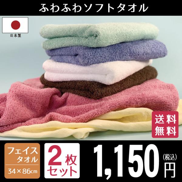 フェイスタオル タオル 選べるカラー2枚セット ふわふわソフトタオル 日本製 ホテルスタイル スタンダードフェイス 約34×86cm 泉州タオル 甘撚り ポイント利用