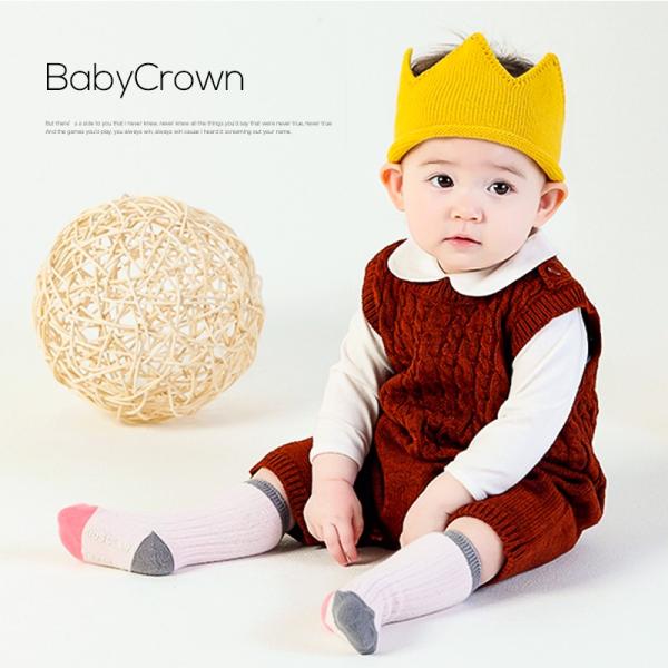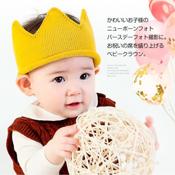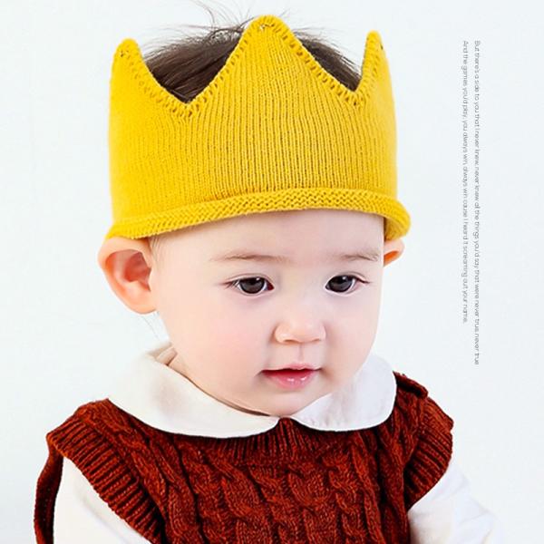 ベビー ヘアバンド 王冠 クラウン ニット 帽子 キャップ 全5色 記念日 誕生日 お祝い ギフトに最適 赤ちゃん ベビークラウン 被り物