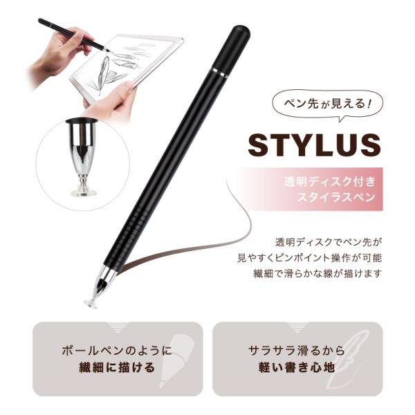 タッチペン 極細 両側 スタイラスペン スマートフォン タブレット 細い 円盤型 クリアディスク イラスト アプリ ゲーム タブレット ポイント消化