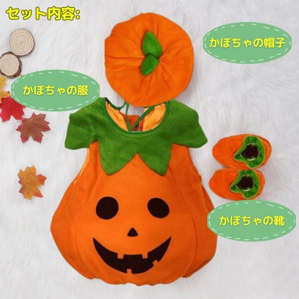 ・セット内容: かぼちゃの帽子、かぼちゃの服、かぼちゃの靴下の3点セット