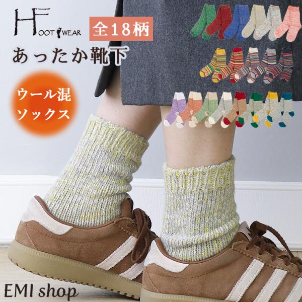 靴下 レディース 冬 ウール おしゃれ 暖かい 厚手 柄 無地 ソックス ウール混 ミドル丈 クルー丈 秋 あたたかい くつ下 防寒