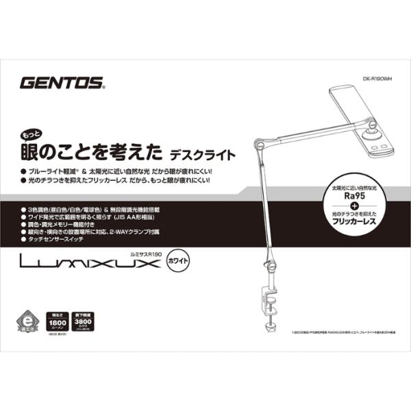 ジェントス 眼のことを考えたデスクライト Lumixuxシリーズ DK-R190WH 3色調色 無段階調光 ワイド発光