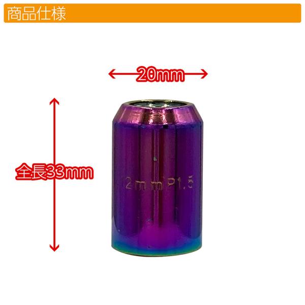 ホイールナット スチール製 内六角 ネオクローム 20本セット M12×P1.5 mm 直径約20mm ソケット付属
