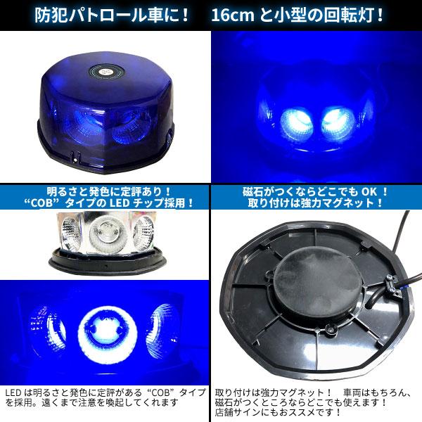 防犯パトロール用 青色灯 12V 24V LED回転灯 COBタイプ【ブルー】WB-820E COBチップ シガーソケット電源 強力マグネット ストロボ ビーコン