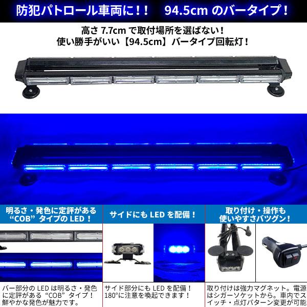 防犯パトロール用 青色灯 12V 24V【94.5cm】LED回転灯 バータイプ【ブルー】COBチップ シガーソケット電源 強力マグネット WB8236-6S フラッシュ ビーコン