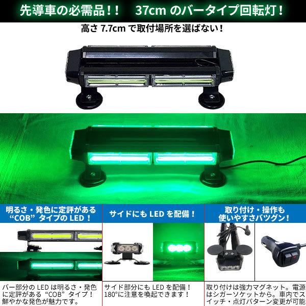 道路運送車両用 緑色灯 12V 24V【37cm】LED回転灯 バータイプ【グリーン】COBチップ シガーソケット電源 強力マグネット WB8236-2S フラッシュ ビーコン