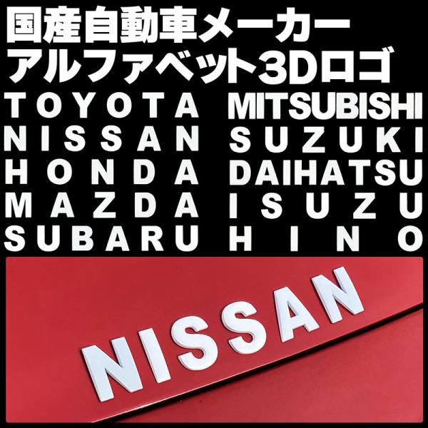 自動車メーカー 3D アルファベット エンブレム ロゴ 金属製 マットホワイト 両面テープ付き