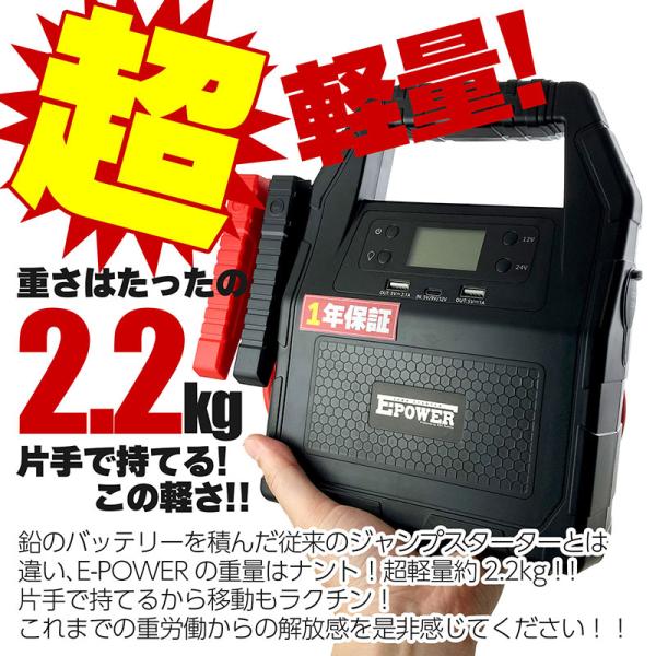 ■最短翌日配送■ 24V 12V ジャンプスターター 1年保証 救援ジャンプ 42000mAh 1500A エンジンスターター 大型トラック 建設用重機 農機具 E-Power