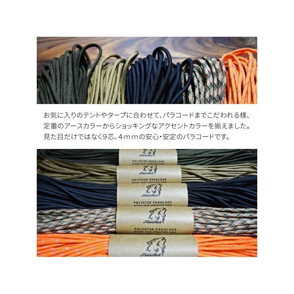 お気に入りのテントやタープに合わせてパラコードまでこだわれる様、定番のアースカラーからショッキングなアクセントカラーを揃えました。