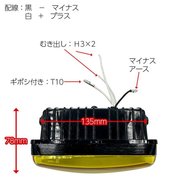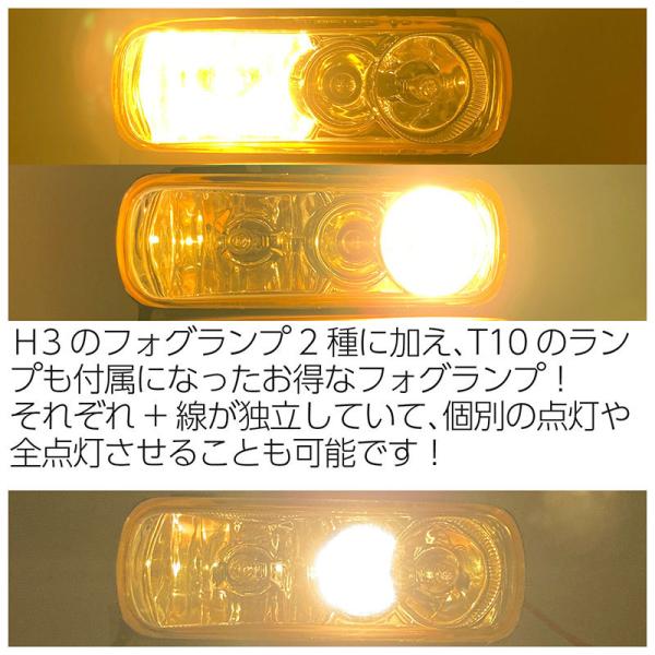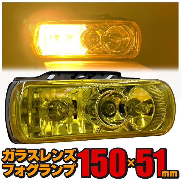 汎用 角型 H3ツイン+T10 フォグランプ イエロー ガラスレンズ DLAA LA5090 150×51×78mm 左右セット