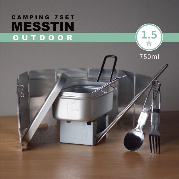 【7点セット】メスティンセット 1.5合 風防 コンパクトストーブ スプーン フォーク 箸 すのこ キャンプ 調理 ポケットコンロ