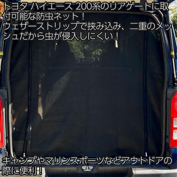 トヨタ ハイエース 200系のリアゲートに取付可能な防虫ネット!ウェザーストリップで挟み込み、二重のメッシュだから虫が侵入しにくい!