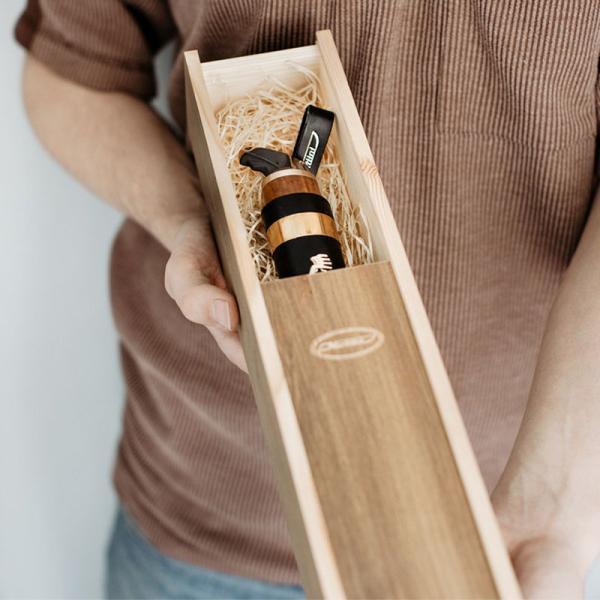 This wooden gift box is visible as "Accessories" with the products that the box is suitable for.