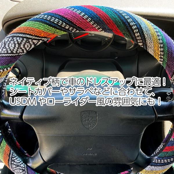 ハンドルカバー 軽自動車 普通車 Sサイズ 36.5~37.9cm サラペ風 ネイティブ柄 スズキ ダイハツ ホンダ トヨタ ニッサン ミツビシ
