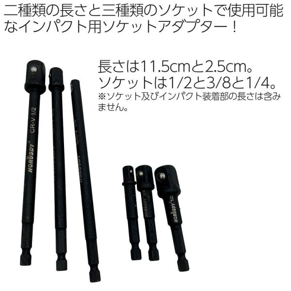二種類の長さと三種類のソケットで使用可能なインパクト用ソケットアダプター!
