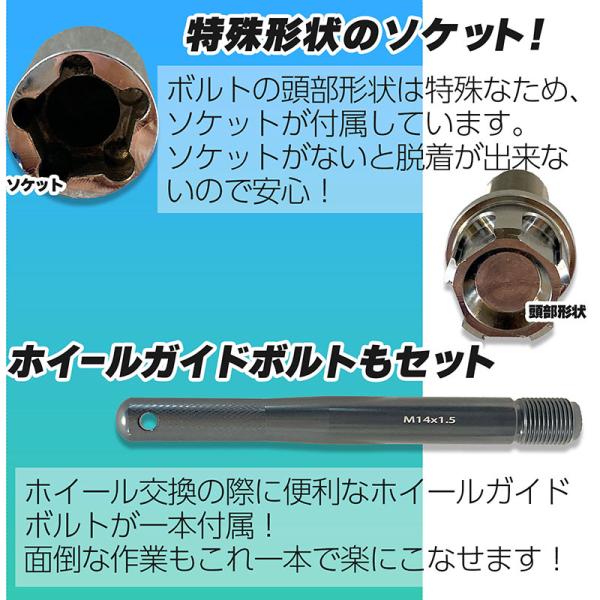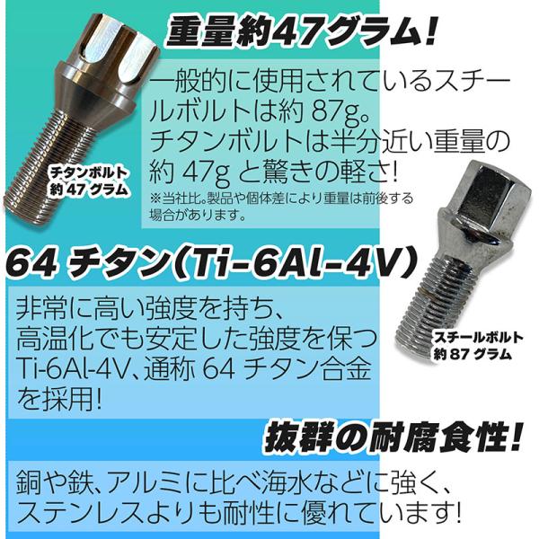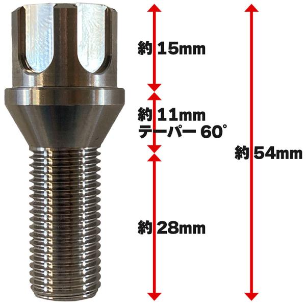 ホイールボルト チタン製 輸入車用 20本セット M14×P1.5×首下28mm テーパー60° ソケット ホイールガイドボルト