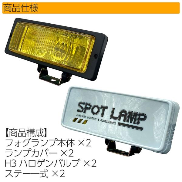 フォグランプ 左右セット 汎用 角型 イエロー ガラスレンズ カバー付き DLAA LA-1022 185×72×68mm