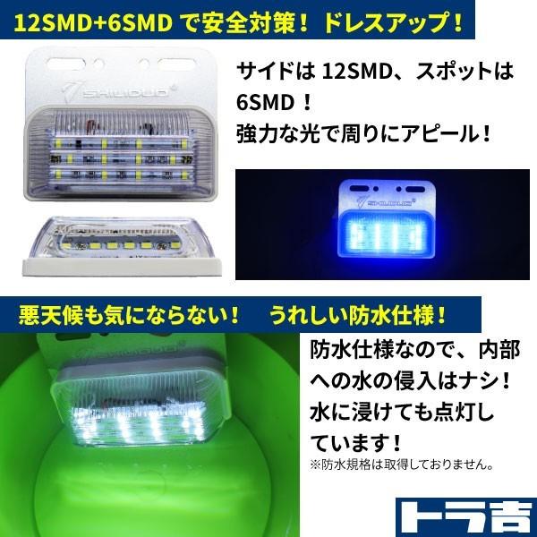 トラ吉 フラットマーカー【レッド】24V LED四角マーカー + アンダースポット サイド12SMD スポット6SMD 鮮やかに輝く!