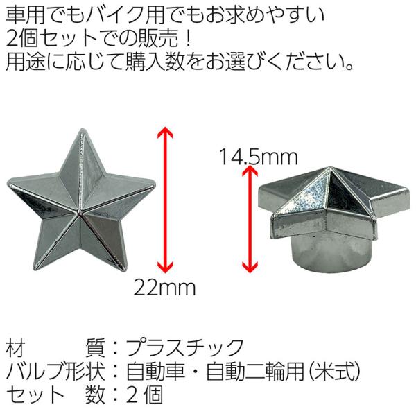 バルブキャップ スター 星 2個セット 米式 車 バイク 自動車 自動二輪 タイヤ ホイール