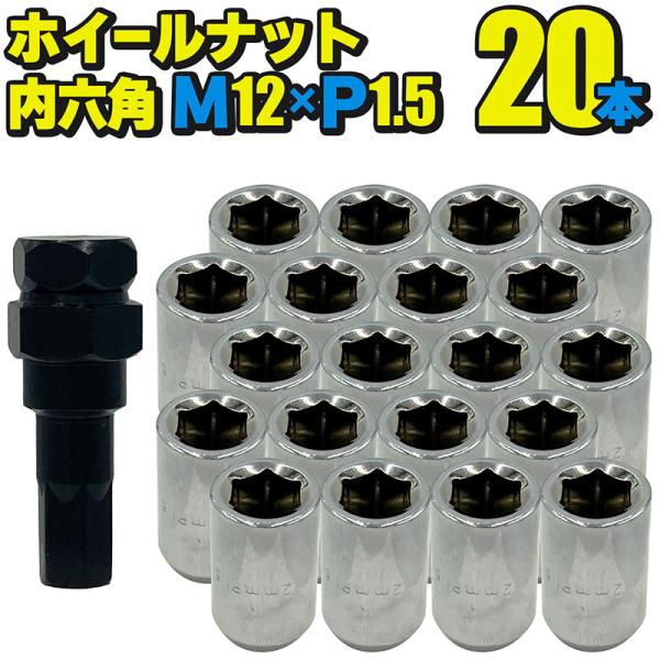 ホイールナット スチール製 内六角 クローム 20本セット M12×P1.5 mm 直径約20mm ソケット付属