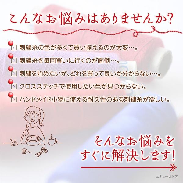 発色の良い光沢感のある色合いが特徴でカラフルな刺繍が楽しめます
