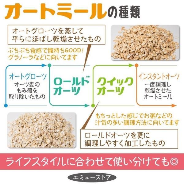 クイックオーツは短時間で調理出来るようにオートミールを細かく細断しています
