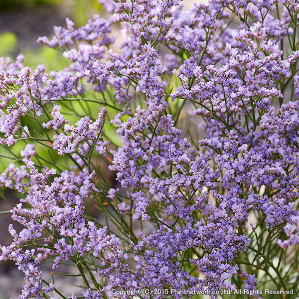 宿根スターチスの中でも大変強健な品種で、グメリーニ種では世界初の超強耐寒性品種!初夏から秋まで次々と花を咲かせます、分枝性も良く花付きも良い品種です。シルバーグリーンの葉色と紫色の花とのコントラストがとてもきれいです。花の時期は夏から初秋なので、長い期間鑑賞できます。鉢栽培に適していますが、花壇に、切り花としてフラワーアレンジメントやドライフラワーにご利用いただけます。ドライフラワーにする場合は、満開になってから切り取ると仕上がりがきれいです。