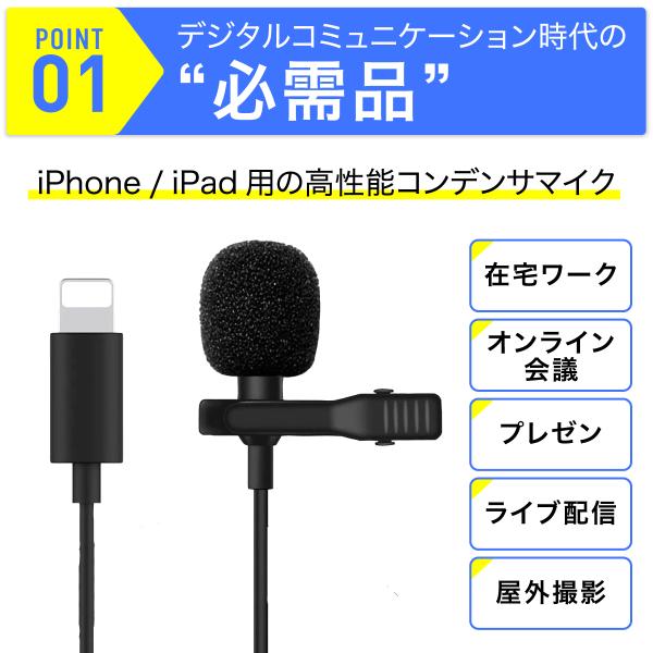 商品名:ピンマイク コンデンサーマイク iPhone スマホ クリップ 高音質 iPad ミニマイク 録音 テレワーク iPhone用 iPad用