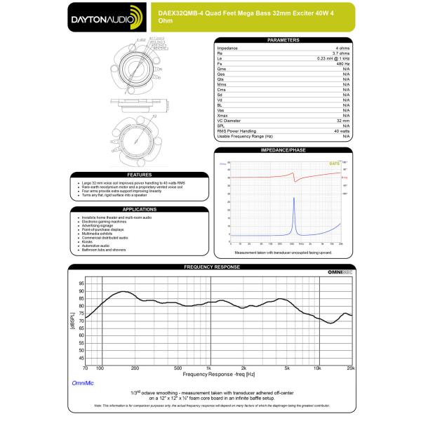 Dayton Audio DAEX32QMB-4 2.5cm 4本脚付 メガ・バスタイプ エキサイター 40W 4Ω