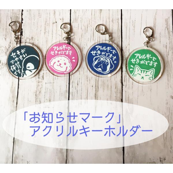 お知らせマーク アクリルキーホルダー アレルギー ネコ・トイプードル・パグ 、体質 ペンギン