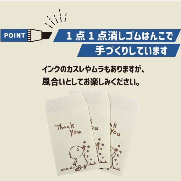 ラスカルのイラストを消しゴムはんこで彫り、和紙のポチ袋に1点ずつ丁寧に捺しました。手作りのぬくもりを感じられるポチ袋です。「Thank you」の文字が感謝の気持ちを伝えてくれます。同柄3枚封入。商品サイズ:100×65mm