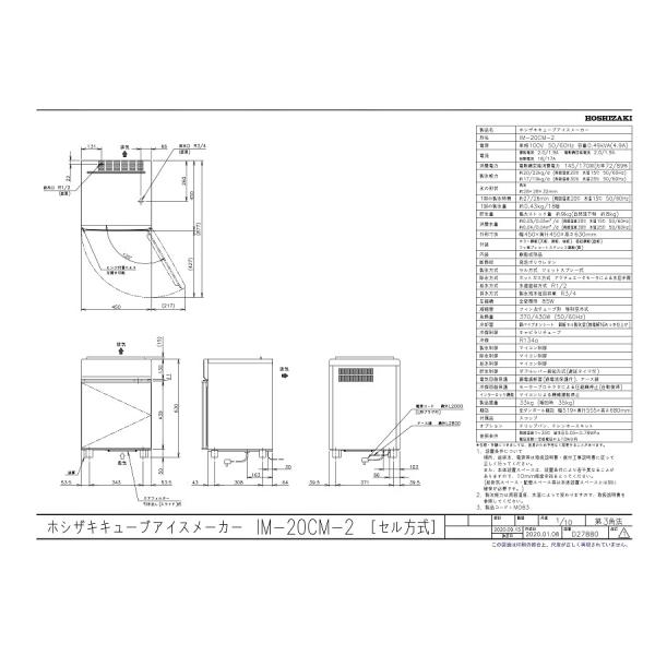 ホシザキ・星崎キューブアイス製氷機型式:IM-20CM-2寸法:幅450mm 奥行450mm 高さ630mm送料:無料 (メーカーより直送)保証:メーカー保証付日産製氷能力20kg