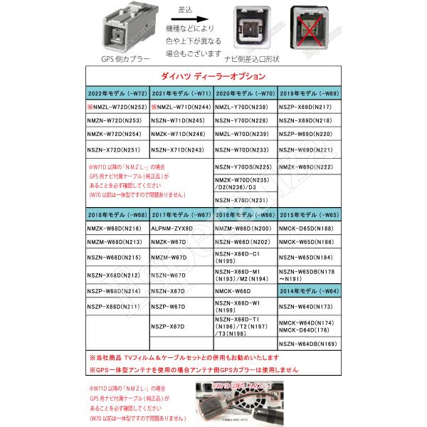※W71D以降の「 NMZL- 」は GPS用ナビ付属線(純正)が