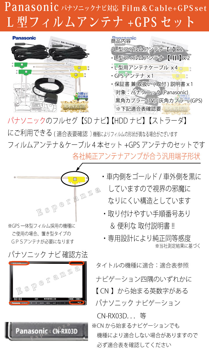 L型フィルムアンテナ&コード4本セット + GPSアンテナ