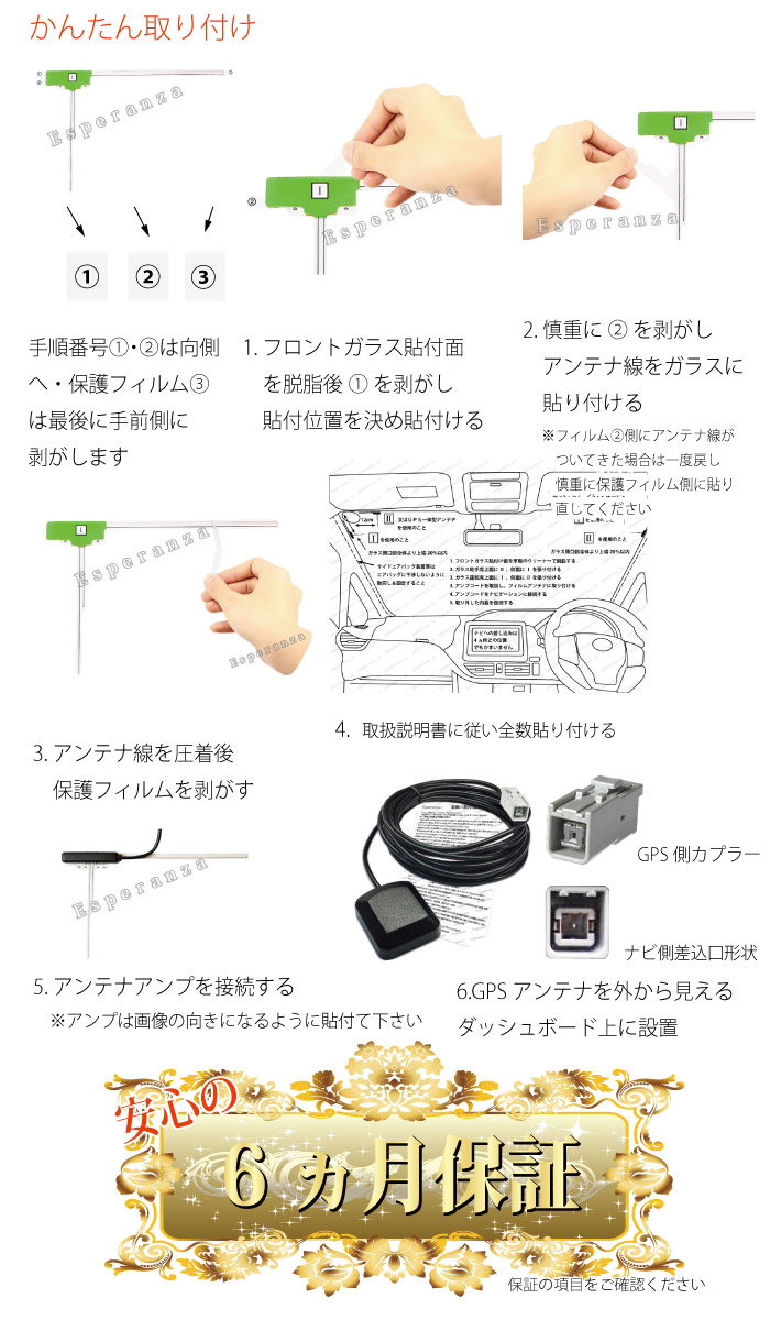 取説付★トヨタGPS一体型フィルムアンテナ コードセット 両面テープ付 NSCD-W66 NSZN-Z66T 地デジテレビ補修 修理 交換 ナビ載せ替え