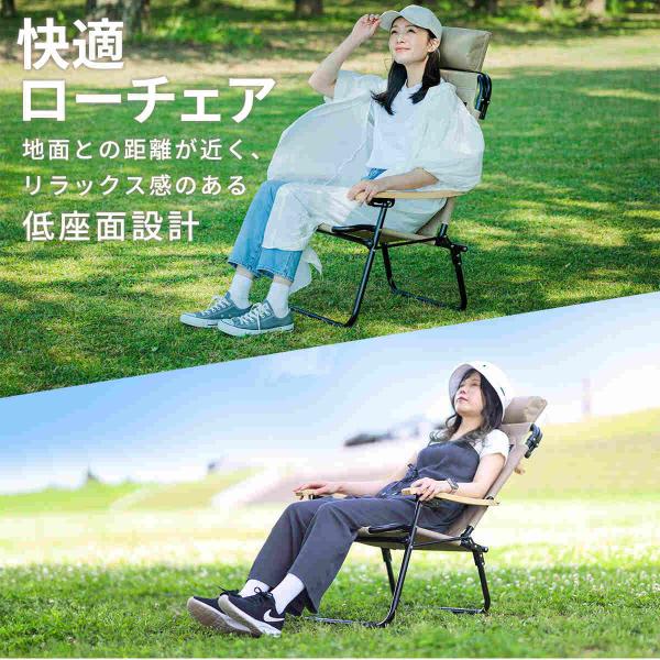 折りたたみリクライニングチェア ローチェア 一人掛け 1人用 3段階 ヘッドレスト付き キャンプチェア 軽量 一人用 いす スリム収納 背もたれ 耐荷重100kg 運動会