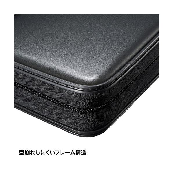 メディアを衝撃から保護するフレーム構造のPP製セミハードタイプのDVD・CDケース。96枚収納・ブラック。