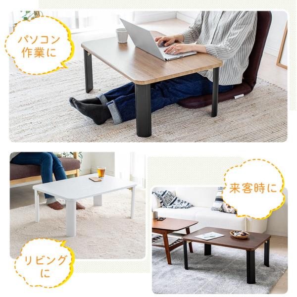 折りたためるテーブル 完成品 組み立て不要 届いたらすぐ使える 一人暮らし 新生活 学生 新社会人 模様替え リビング 角が丸い 子供 傷防止 パソコンデスク 在宅ワーク ちゃぶ台 座卓 ローテーブル パソコンテーブル