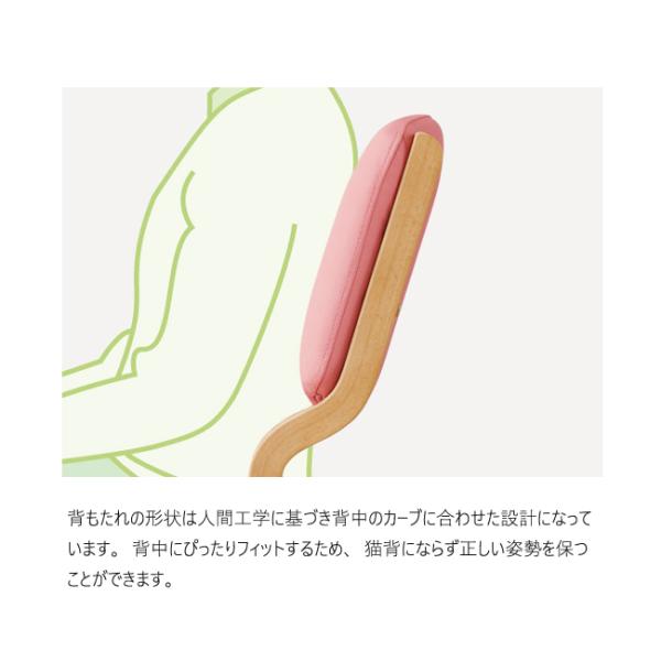 厚みのあるクッションと背中のカーブに沿った背形状が、快適な座り心地と正しい姿勢での学習をサポートします。