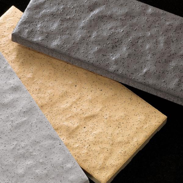 グレー系と茶系のベーシックな色合いを持つモザイクタイル。さまざまな建物の壁面にマッチします。