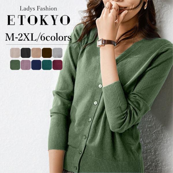 カーディガン ニット Uネック Vネック 2タイプ カジュアル ゆったり 大きいサイズ有 シンプル 柔らか 着心地 シンプル レディース 長袖