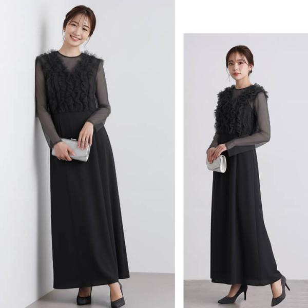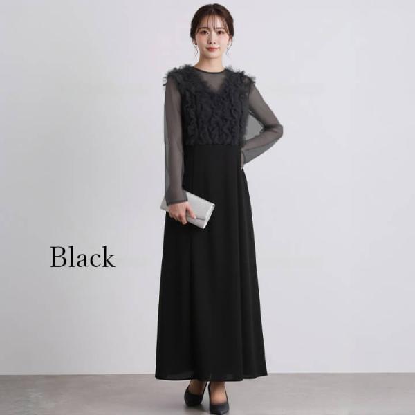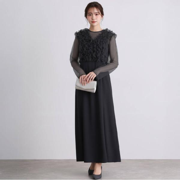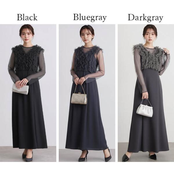 フォーマルドレス ワンピース パーティードレス ロング丈 ミモレ丈 レディース ドレス 3点セット セレモニードレス フェミニン 長袖 チュール フリル ycpt85