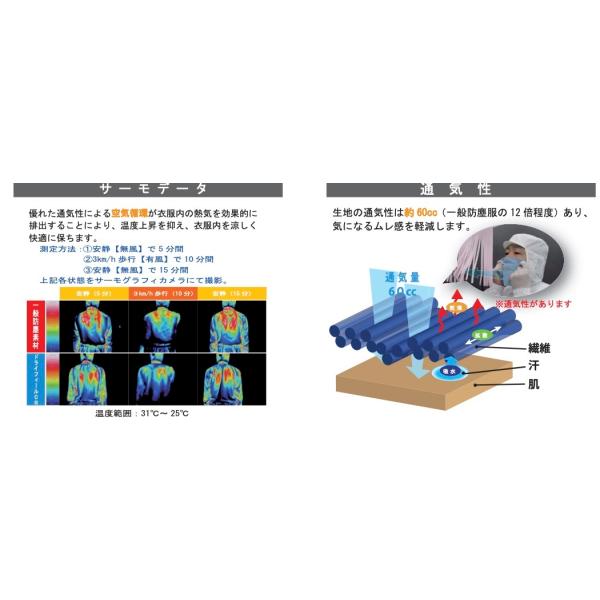 低発塵性と高い通気性(60cc)によりムレ感の軽減を両立した清涼フード一体型クリーンスーツ HACCP仕様