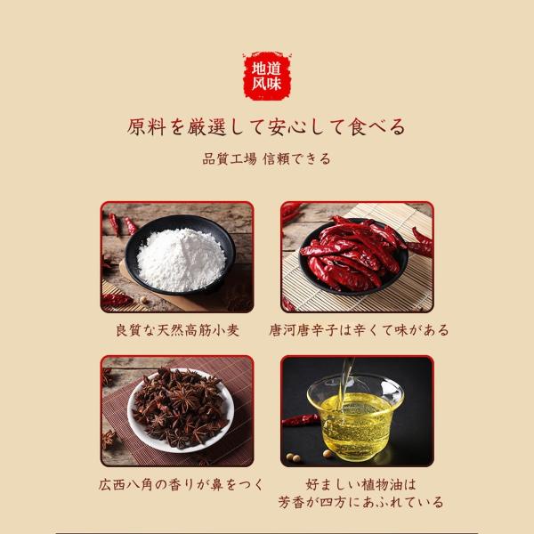 原材料と成分:小麦粉、食用植物油、飲料水、食用塩、グリセリン、白砂糖、唐辛子、スパイスなど。